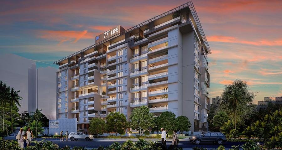 Divyasree 77 Life: luxury apartments in Yemalur, Bangalore's Divyasree Town Centre. Spacious 3 & 4 BHKs, penthouses, lush greenery, elite living. Near Indiranagar, Marathahalli, with a 55,000 sqft clubhouse, gym, pool, sports courts, children's play area, and security.